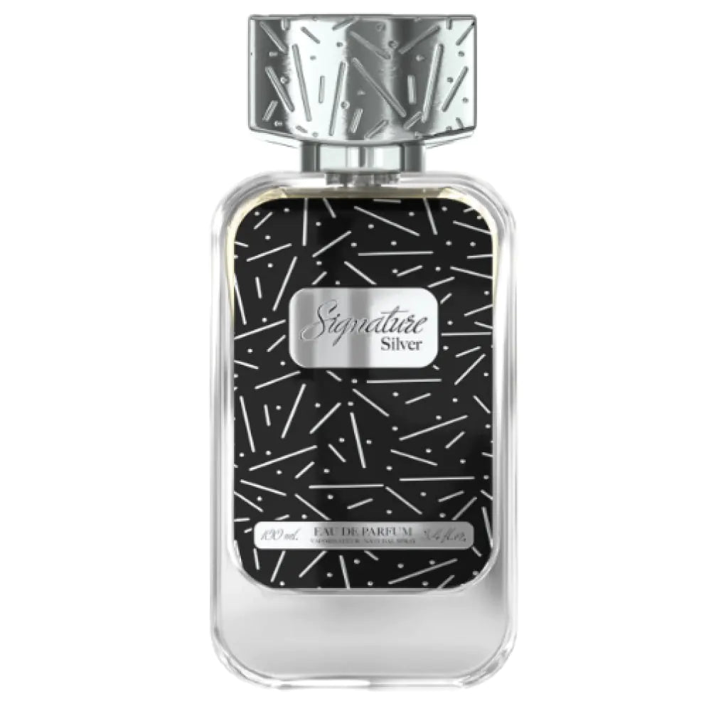 Signature Silver Dkhoon Emirates عطر شرقي - خشبي للرجال . Signature Silver صدر عام 2021. Gaël Montero قام بتوقيع هذا العطر. إفتتاحية العطر البرغموت و الفلفل الأسود; قلب العطر الجلود و الباتشولي; قاعدة العطر تتكون من خشب الصندل, العنبر و العود.